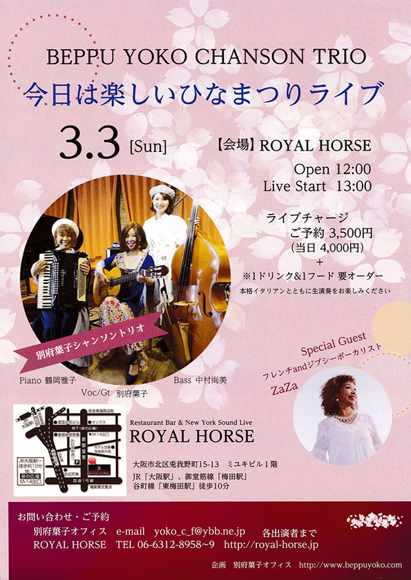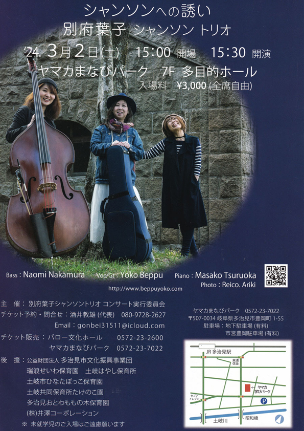 Voc/Gt 別府葉子 Pf 鶴岡雅子 Bass 中村尚美