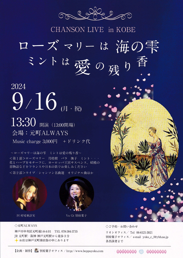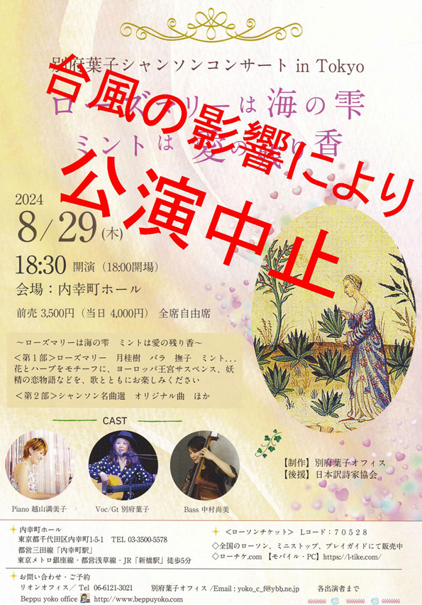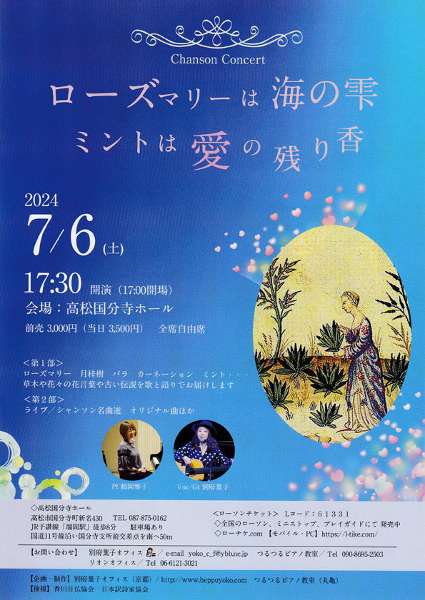 - 主催:別府葉子シャンソントリオコンサート実行委員会